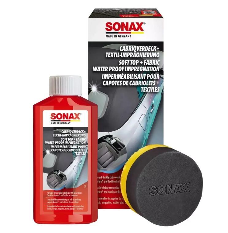 SONAX Импрегнатор 250 ml (310141) е специјално средство за импрегнација кое создава заштитен слој на текстилни и кожни површини. Ја штити површината од вода, нечистотии и дамки без да ја менува бојата или структурата на материјалот. Идеален за автомобилски седишта, теписи, кабрио покриви и други текстилни површини.